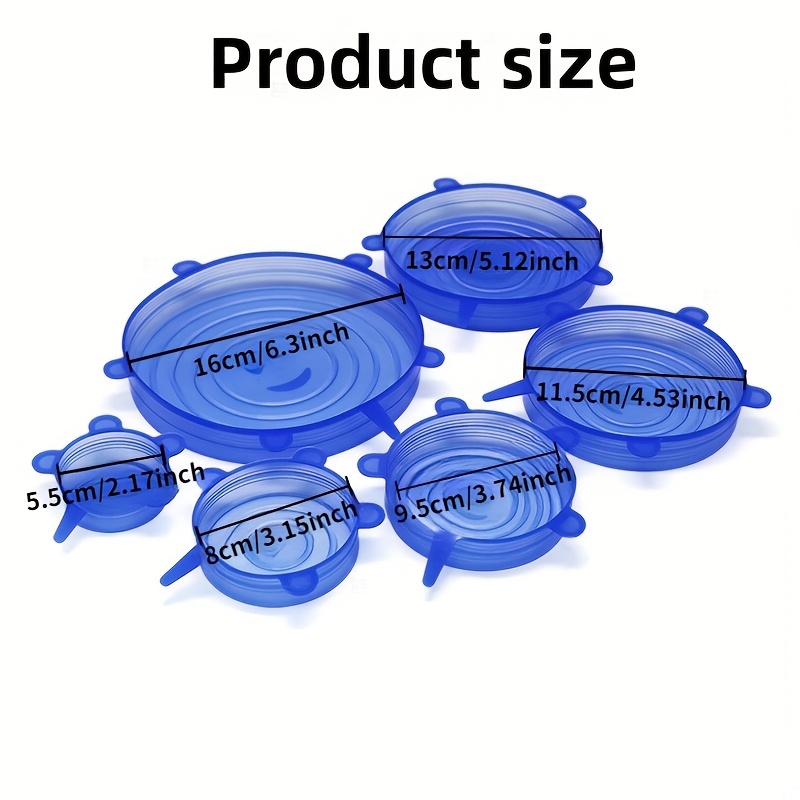 6個セット 再利用可能なシリコンストレッチ蓋 - ボウル、ジャー、カップ&ボトル用耐久性食品保存カバー、ブルー、マルチサイズ(20.5cm、16.5cm、14.5cm、10cm、9cm、8cm)、シリコーン製食品保存