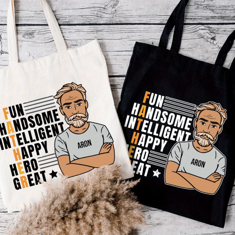 面白い父の日トートバッグ、ポリエステル、大容量、トレンディなシンプルなスタイル、丈夫、ハッピーファーザーズデイ印刷付き、父さん、屋外ピクニック、パーティー、旅行、ショッピング用