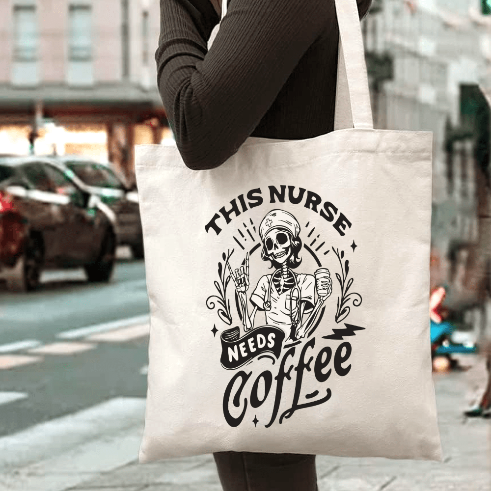 面白いナースデイトートバッグ 大容量・耐久性ポリエステル製「コーヒーが必要」デザイン ショッピングや旅行、パーティーに最適 ブラック&ベージュカラー ナースアクセサリー