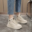 女性向けのトレンディなプラットフォームスニーカー、レースアップ&サイドジッパーのハイカットスケートシューズ、快適なハイトアップスポーツシューズ