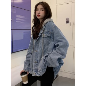 レディース ショートデニムコート レディース ネイルパール ルーズ 春秋 デニム服