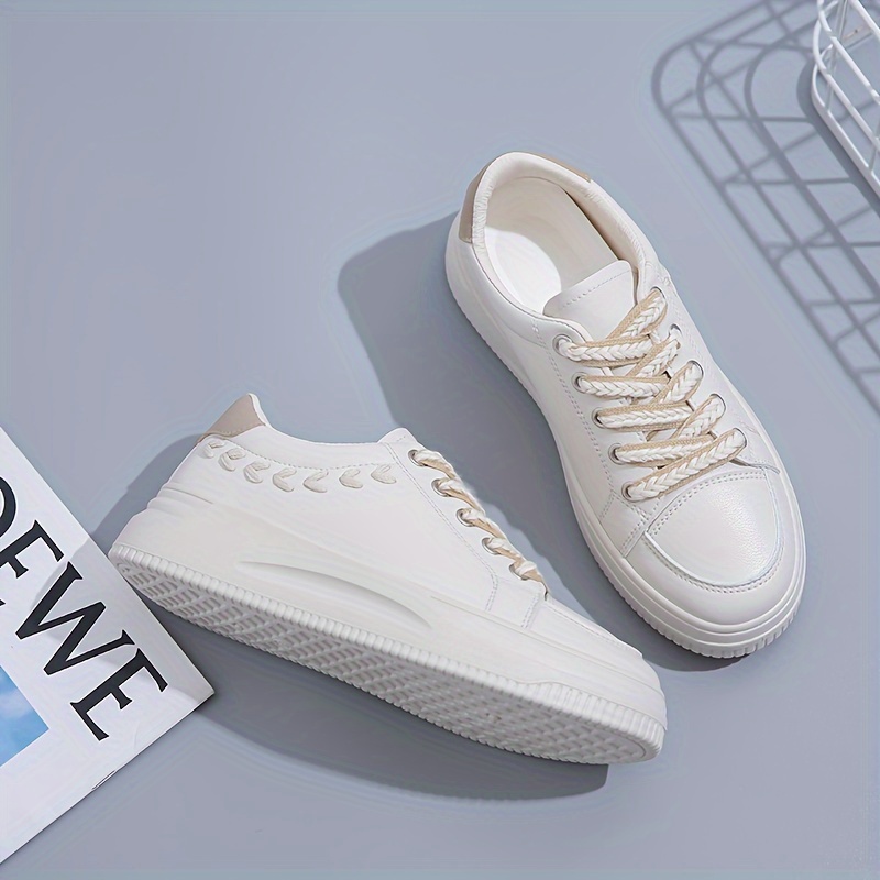 2024トレンディな女性用カジュアルスニーカー - 多機能ロートップレースアップシューズ、厚手のプラットフォームソール、フェイクカバー&PVC素材