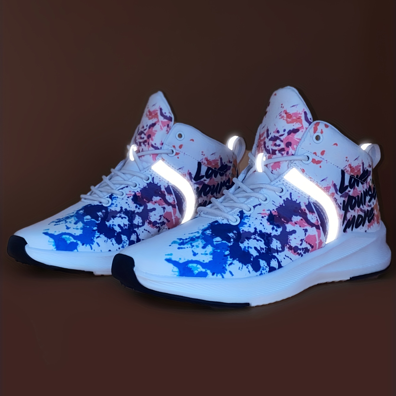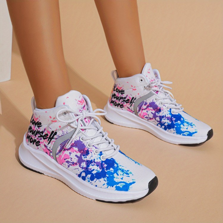 レディースレタープリントプラットフォームスニーカー、カジュアルレースアップアウトドアシューズ、軽量ローカットアウトドアシューズ(プラスサイズ)