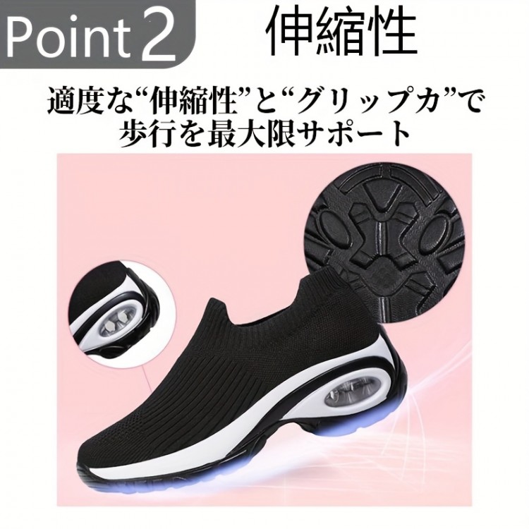 レディース スリッポン スニーカー - 通気性のあるニットアッパー、エアクッションサポート、軽量で快適なウォーキングシューズ(ブラック、レッド、ホワイト、グレー)- スポーツ、カジュアルウェア、日常使いに最適