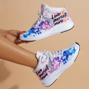 女性のレタープリントプラットフォームスニーカー、ファッションレースアップミッドトップシューズ、快適なアウトドアスポーツシューズ