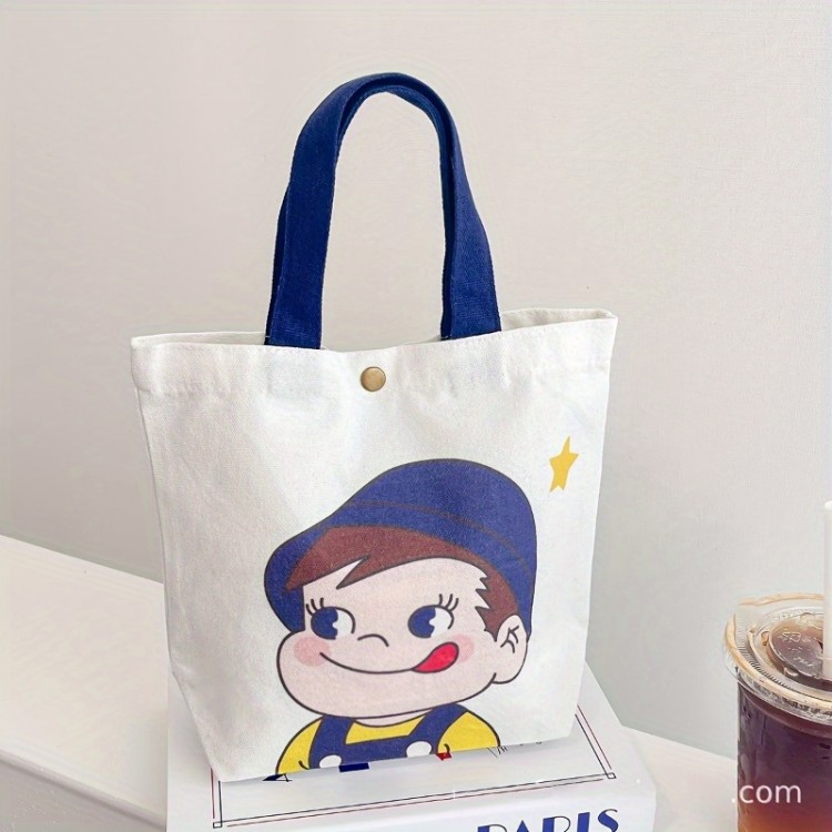 赤い遊び心のある女の子と青いカートゥーンの男の子のキャンバストートバッグ - ハンドル付き、耐久性があり、再利用可能なショッピングバッグ、手洗い可能、クロージャーなし、エッジペイントなし、groceriesやショッピングに最適、ショッピングバッグ|遊び心のあるデザイン|耐久性のあるハンドル、かわいいトートバッグ