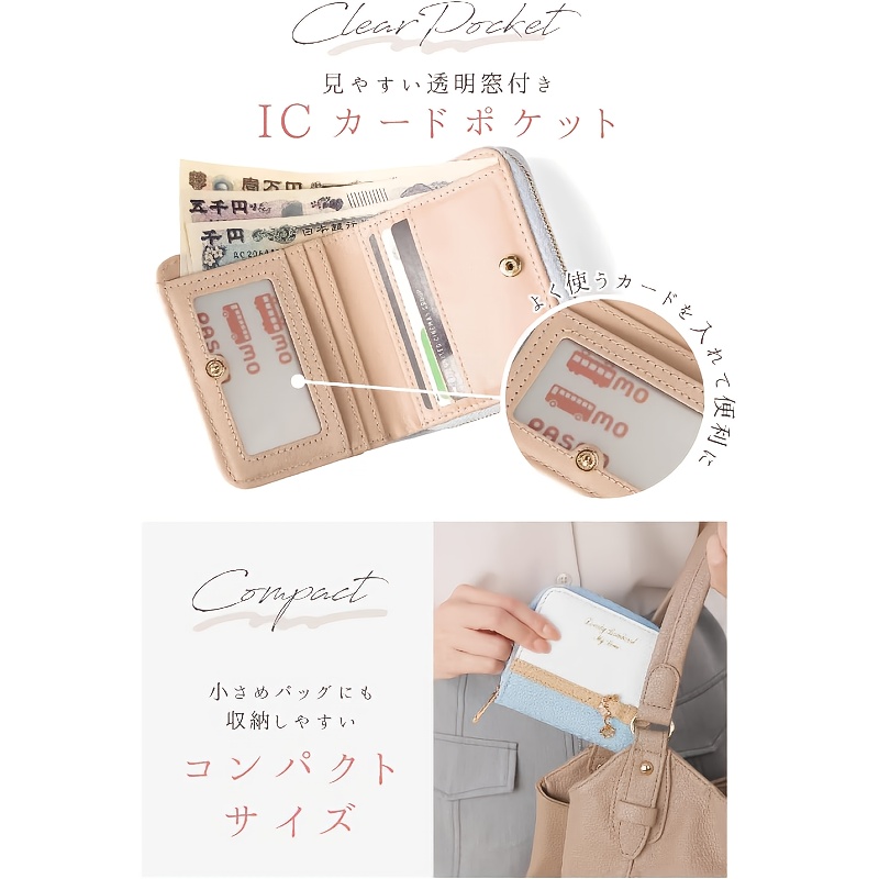 1個 女性用ファッションコンパクトダブルフォールドウォレット、多機能カードポケット付きミニウォレット、軽量収納、5色、PU素材、ジッパークロージャー、手洗いまたはドライクリーニング、日常使用の通勤トートバッグ