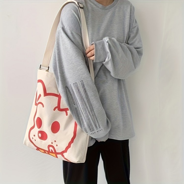 漫画プリント2Wayトートバッグ 大容量キャンバス素材 軽量&超耐久 ビーチ/ピクニック/旅行三拍子 インスタ映え必至 プレゼント対応 おしゃれストラップデザイン トレンド急上昇