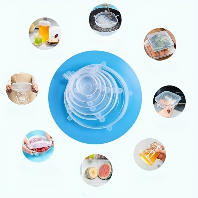 6個セット シリコンストレッチ蓋 - 多目的&再利用可能な食品カバー、さまざまな容器にフィット、食洗機&冷凍庫対応、必須キッチンアクセサリー