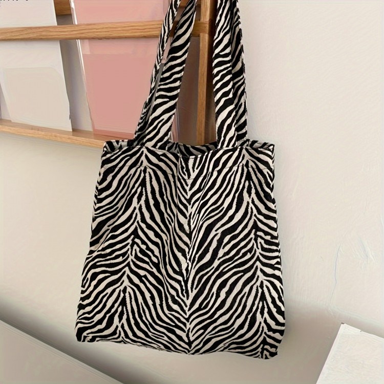ユニセックス 大人用 大容量 ゼブラ柄 キャンバストートバッグ - シンプルショルダーサッチェル、ユニセントポリエステル、ブラック